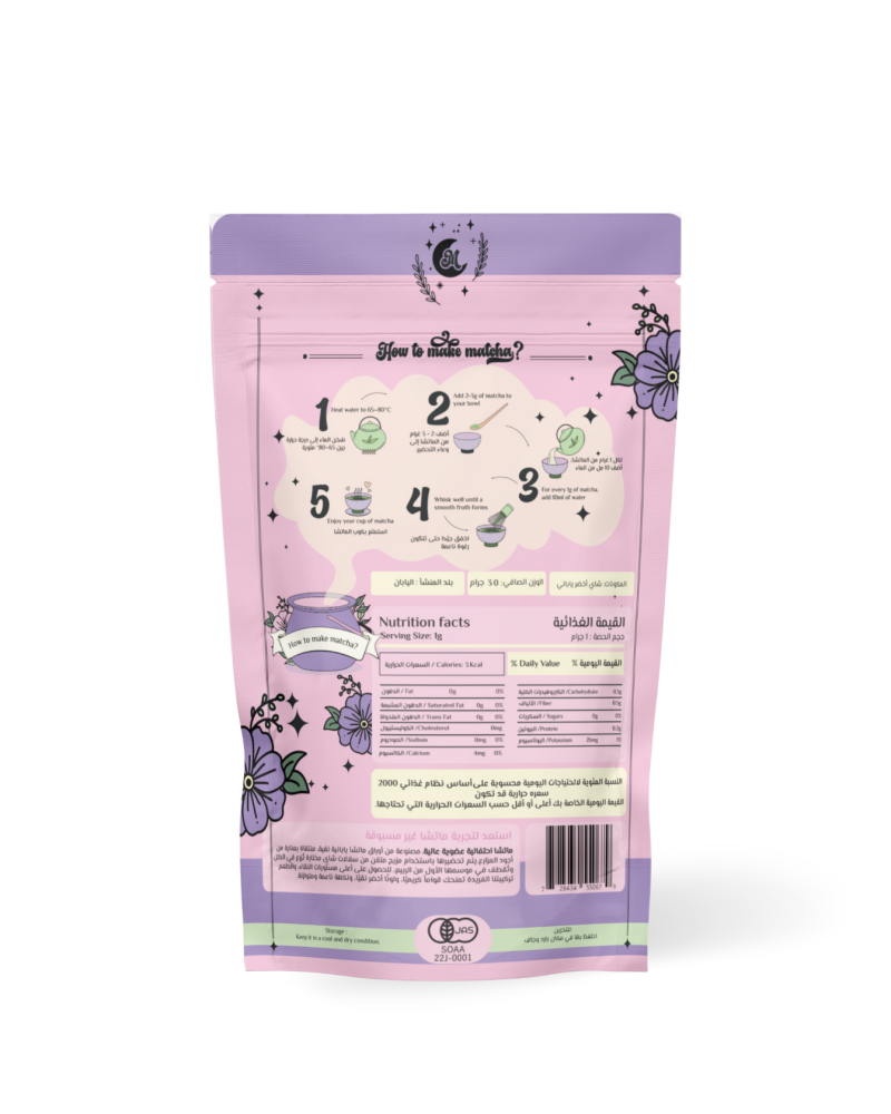 مسحوق الماتشا الفاخر الذي سيأخذ تجربتك إلى مستوى جديد. منتجنا العضوي المعتمد من اليابان مصنوع من أجود أوراق الشاي التي يتم قطفها في فصل الربيع، ليمنحك نقاءً وجودة لا تضاهى.
